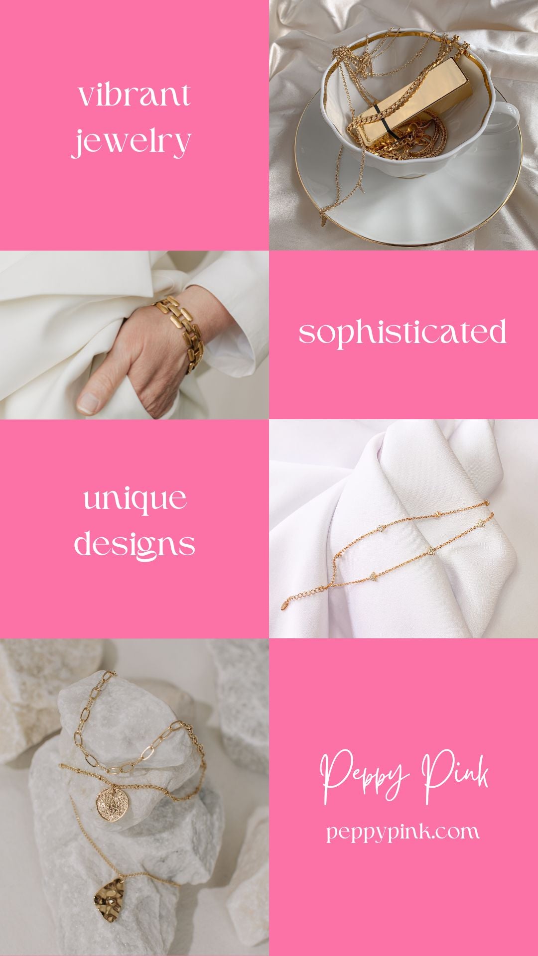 Discover a world of vibrant color and playful elegance with Peppy Pink. We believe that looking and feeling fabulous shouldn't break the bank. Our collection of affordable jewelry is designed to empower you to express your unique style without compromise. From dazzling necklaces that command attention to delicate earrings that whisper sophistication, we offer a range of pieces to suit every occasion. Crafted with care and attention to detail, our jewelry is not just an accessory; it's a statement of confidence and individuality. Indulge in the joy of accessorizing without the guilt, and let Peppy Pink add a touch of magic to your everyday life. Our pieces are designed to elevate your everyday look and express your unique personality. Let Peppy Pink be your secret weapon for elevating your everyday look. From day to night, our versatile pieces will add a touch of glamour to any outfit.
