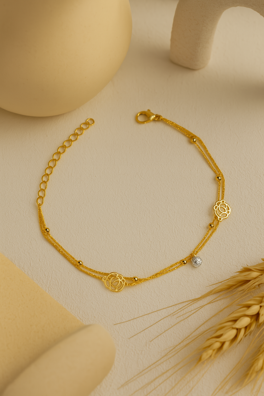 The Bloom Anklet is a delicate, nature-inspired piece designed to bring the beauty of blossoming flowers to your everyday style. Crafted with high-quality materials, this anklet features a gentle arrangement of dainty floral charms, each representing a moment of growth and new beginnings. The intricate details of the flowers, combined with a subtle glimmer from the fine metal finish, create a soft, romantic aesthetic perfect for any occasion. Whether you're walking barefoot on the beach or dressing up for an evening out, the Bloom Anklet adds an elegant touch, symbolizing the simple yet powerful beauty of nature in full bloom. It's an ideal accessory for those who appreciate the finer things in life, celebrating both the bold and the delicate.