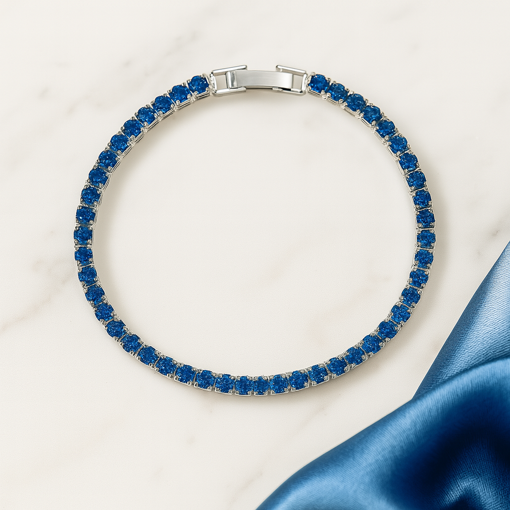 Discover the beauty of the Blue Zenith Bracelet, a stunning piece of jewelry that captures the essence of the night sky. Featuring deep blue hues that shimmer like stars, this bracelet is crafted to add a touch of elegance and sophistication to any outfit. Perfect for special occasions, daily wear, or as a thoughtful gift, its unique design brings a sense of serenity and charm. Made with high-quality materials, the Blue Zenith Bracelet is not only a striking fashion accessory but also durable and long-lasting. Whether you're dressing up for a night out or looking to add a subtle pop of color to your ensemble, this bracelet is the ideal choice.