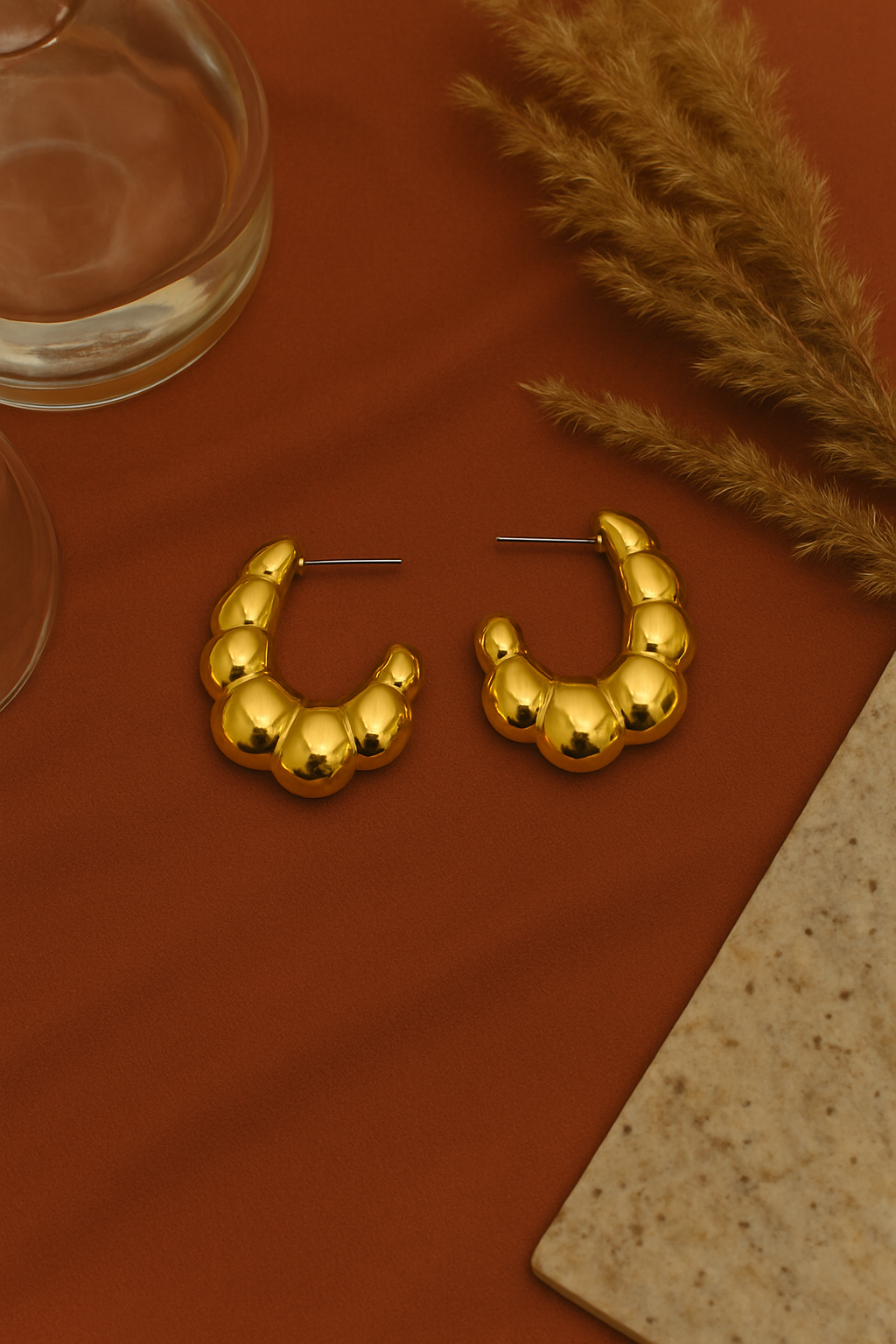 Add a playful twist to your everyday look with our Bubble Hoops. Crafted with smooth, rounded curves, these earrings bring a modern yet timeless vibe to any outfit. Lightweight and versatile, they’re perfect for daily wear or a night out. A must-have hoop for jewelry lovers who want effortless style.