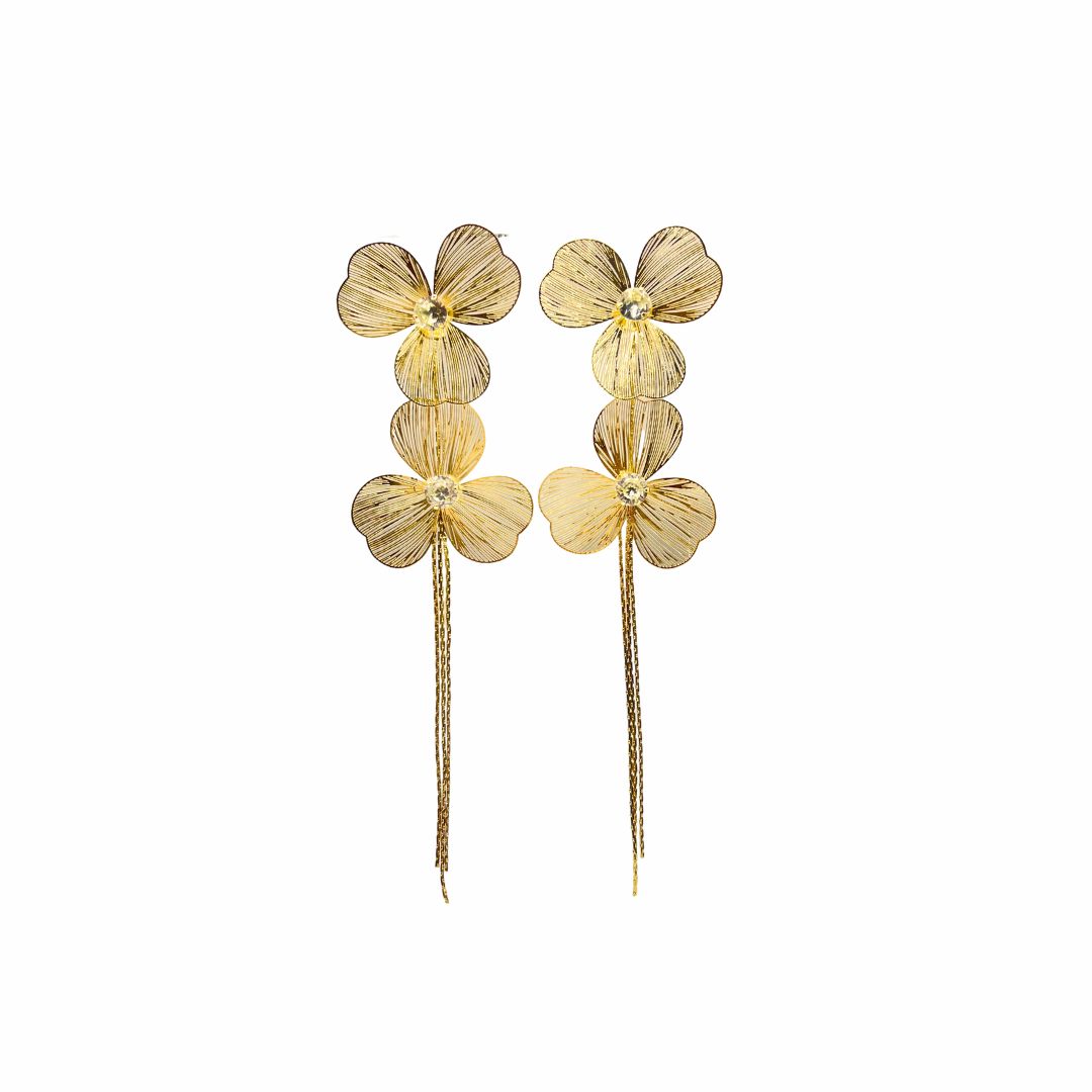 Delicate flower-shaped earrings featuring sparkling crystal centers and long, graceful chains that sway with every movement. These elegant earrings capture the essence of timeless beauty, adding a touch of nature-inspired charm to any look. Perfect for enhancing both everyday outfits and special occasions with their refined and radiant design.