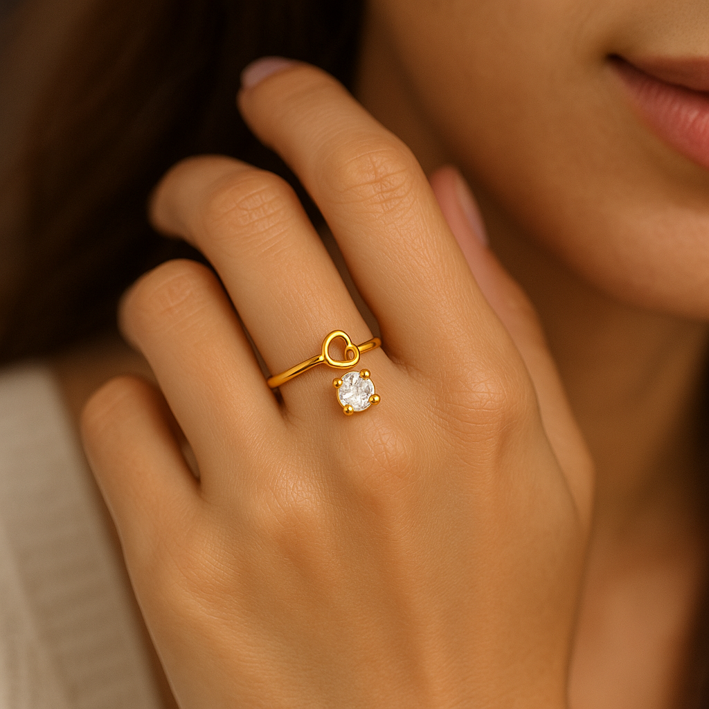 Embrace the warmth of love with the Heart of Radiance Ring. This elegant piece features an open heart design that symbolizes the boundless nature of affection and connection. The ring's delicate yet striking shape is crafted with precision, allowing light to dance through the open heart and create a radiant glow. The band is slender and graceful, designed to enhance the femininity of the piece without overshadowing the central gemstone.