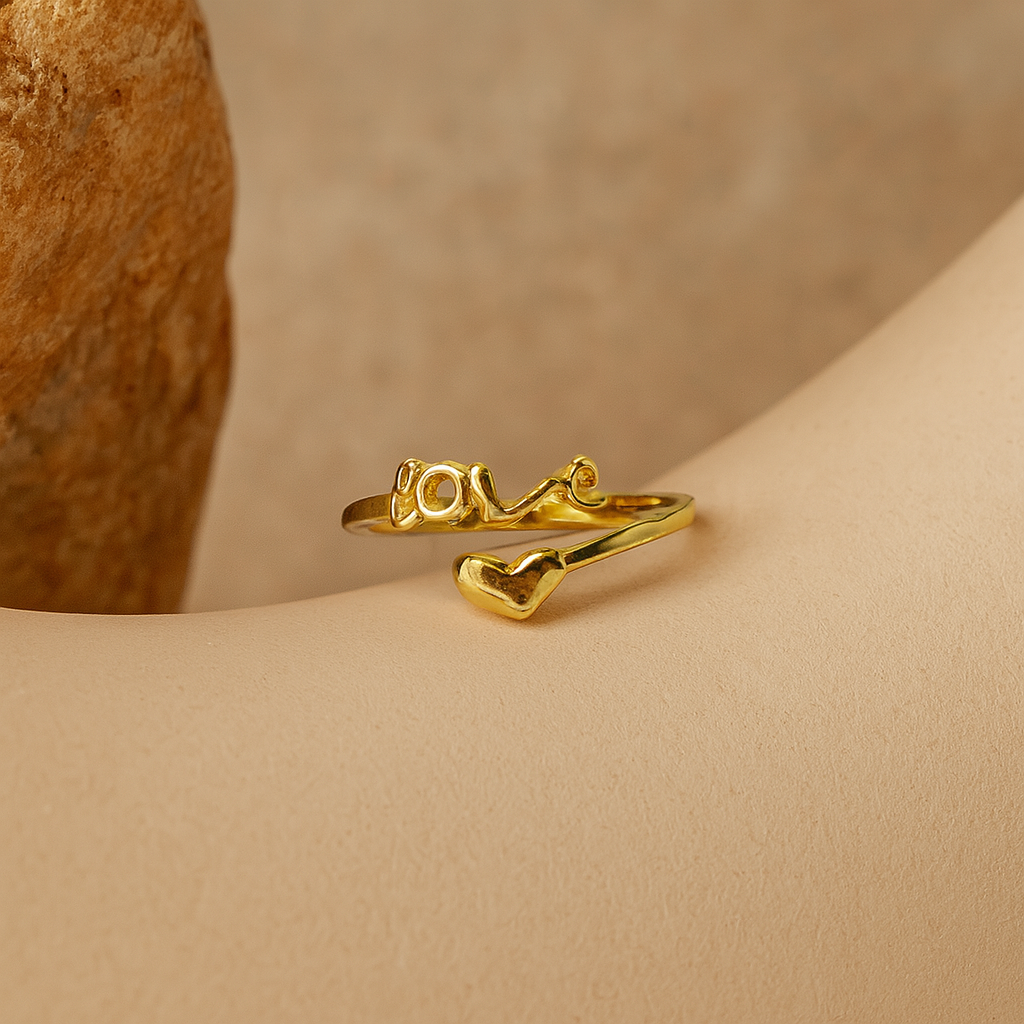 Declare your love with the Heartfelt Love Ring. This delicate and romantic piece features the word "love" elegantly intertwined with a heart, symbolizing the enduring power of this emotion. The ring's adjustable design ensures a comfortable fit, allowing you to wear it on any finger and embrace its heartfelt message.