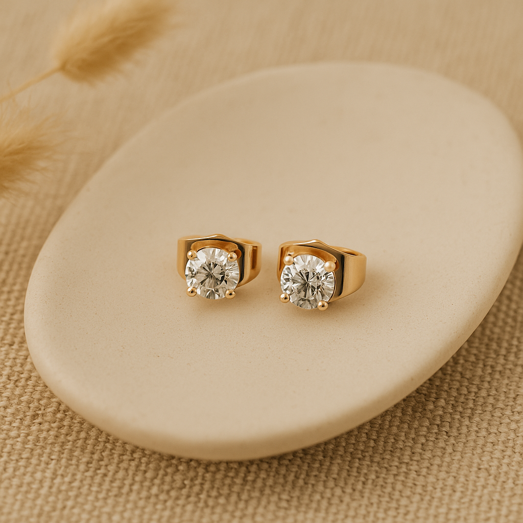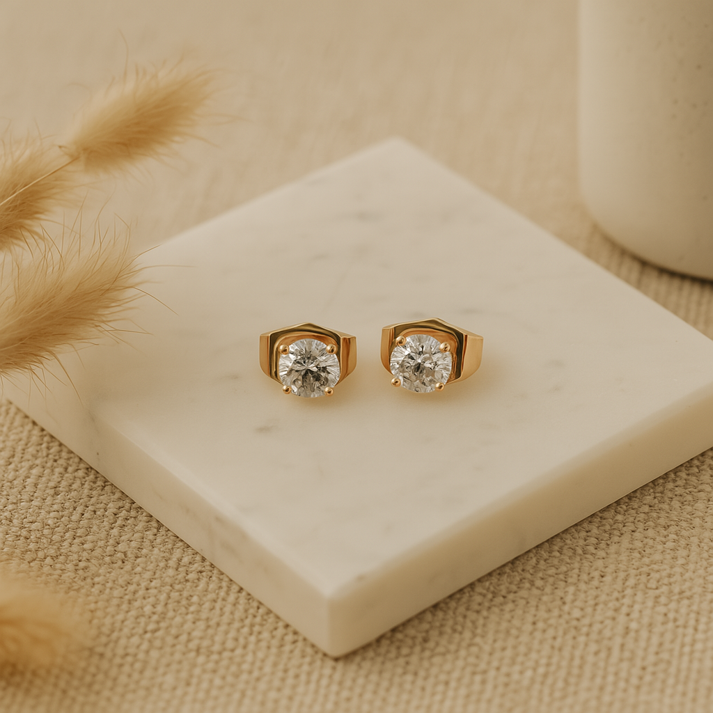 Elevate your style effortlessly with our Round Cut Studs, a classic accessory designed to shine in every moment. Each earring features a flawlessly cut, luminous round stone that reflects light like the gentle shimmer of sunlight on the ocean waves. With their understated elegance, these studs blend seamlessly into any outfit, from casual daywear to glamorous evening looks. Perfect for gifting or as an indulgent addition to your personal collection, these Round Cut Studs embody a sense of effortless luxury. Let their brilliance speak for itself, whether worn solo for a refined touch or paired with complementary pieces for a polished, layered look.