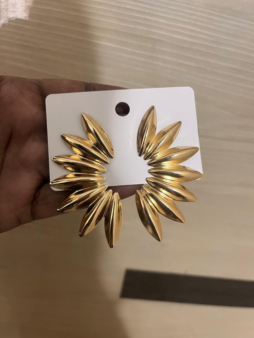 The Solar Flare Earrings are a captivating blend of elegance and boldness, designed to evoke the radiant energy of a solar flare. These earrings are crafted from high-quality materials, featuring a delicate yet striking design that mimics the powerful bursts of the sun. The surrounding metalwork fans out in a sunburst pattern, with slender, elongated rays that dangle gracefully, creating movement with every turn of the head. Lightweight and comfortable for extended wear, the Solar Flare Earrings add a touch of celestial glamour to any outfit, making them perfect for both casual and formal occasions.