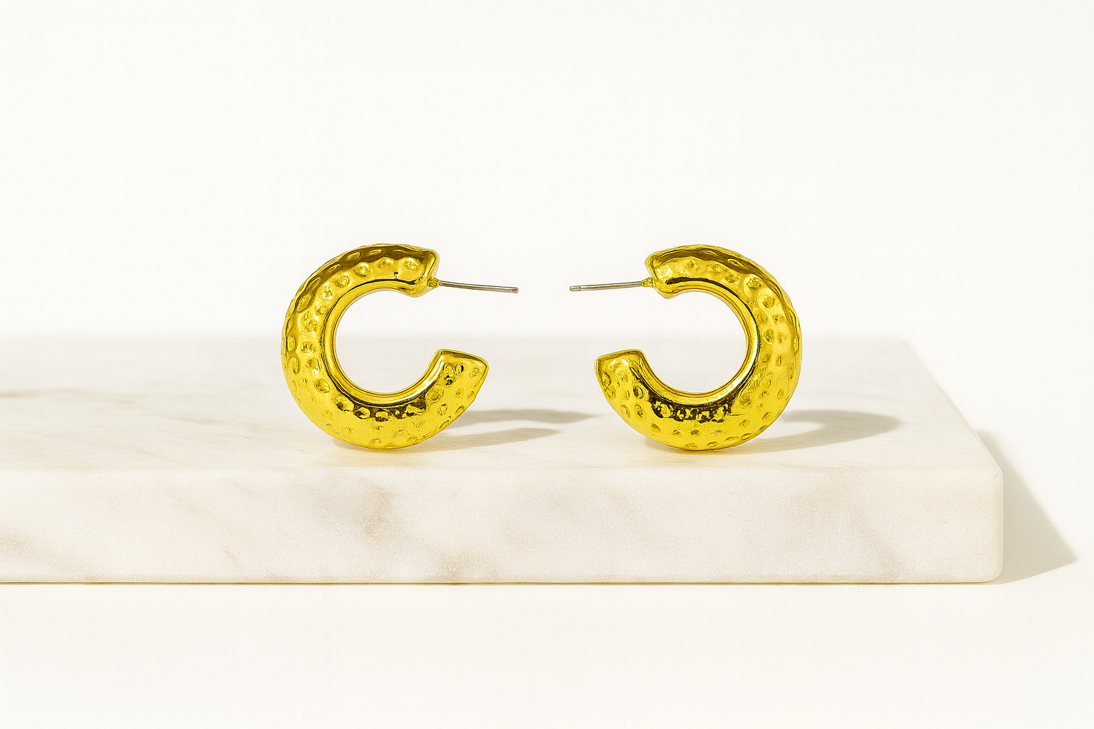 Our Textured C-Hoops are the perfect blend of minimal design and modern elegance. Featuring a chic C-shaped silhouette with a refined textured finish, these earrings add just the right touch of sparkle for everyday wear or special occasions. Lightweight, versatile, and timeless—your new go-to hoops for effortless style.