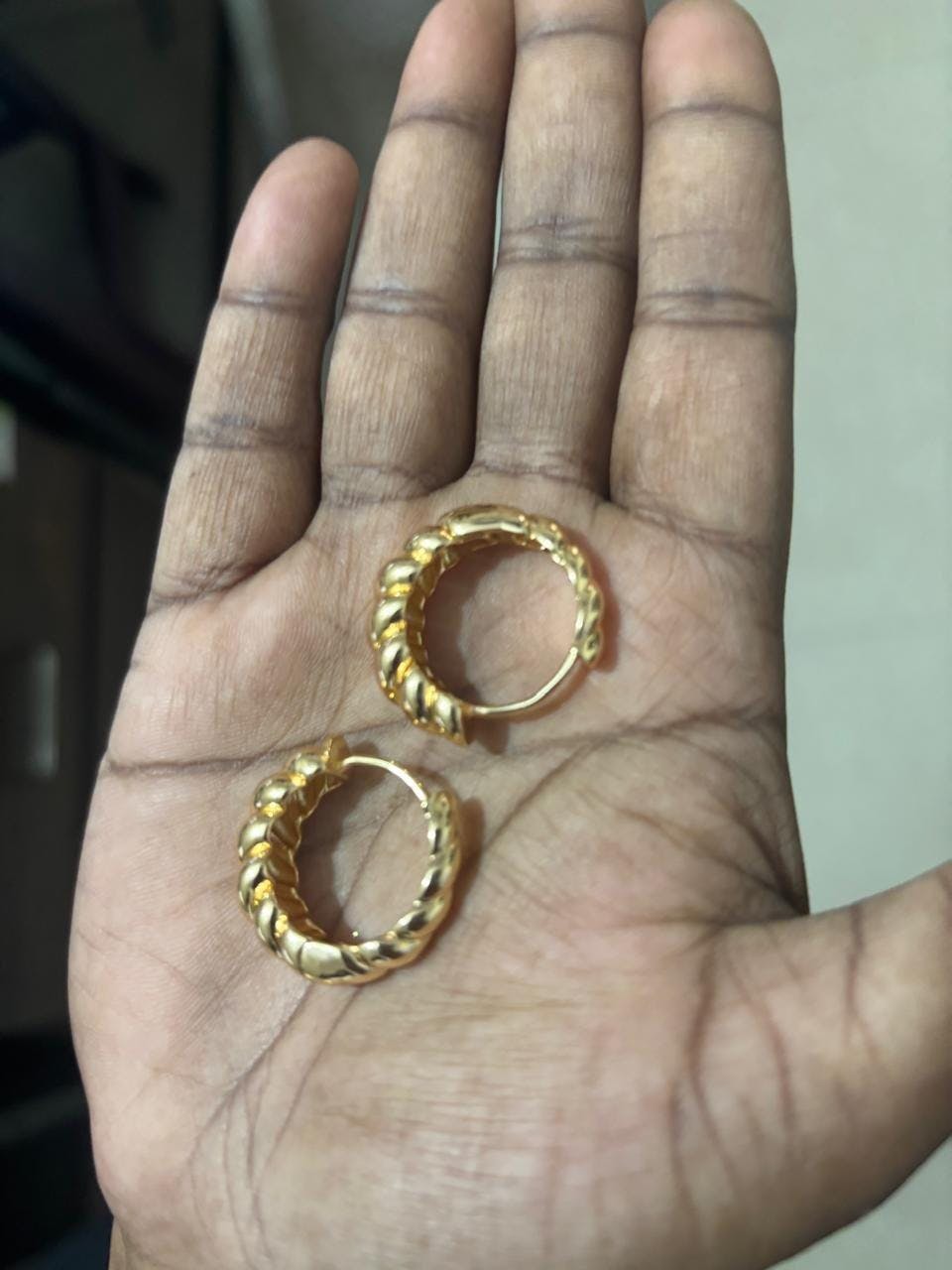 Elevate your style with our Twisted Hoop Earrings, a sophisticated twist on a classic design. Crafted from high-quality materials, these earrings feature a delicate spiral twist that catches the light beautifully, creating a dynamic and eye-catching effect. The twisted texture adds an element of intrigue and elegance. The hoops are designed to sit comfortably on the ear, making them perfect for both everyday wear and special occasions.