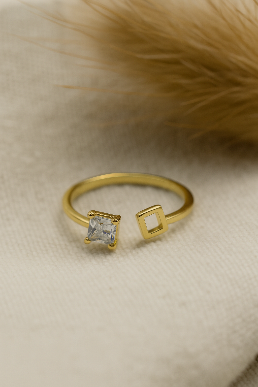 Define your style with the Urban Horizon Ring, a striking piece that blends modern design with sophisticated elegance. Featuring a bold square shape and an open band, this ring creates a clean, geometric silhouette that makes a powerful statement. Crafted with high-quality materials, the Urban Horizon Ring offers a contemporary edge while maintaining a refined aesthetic.